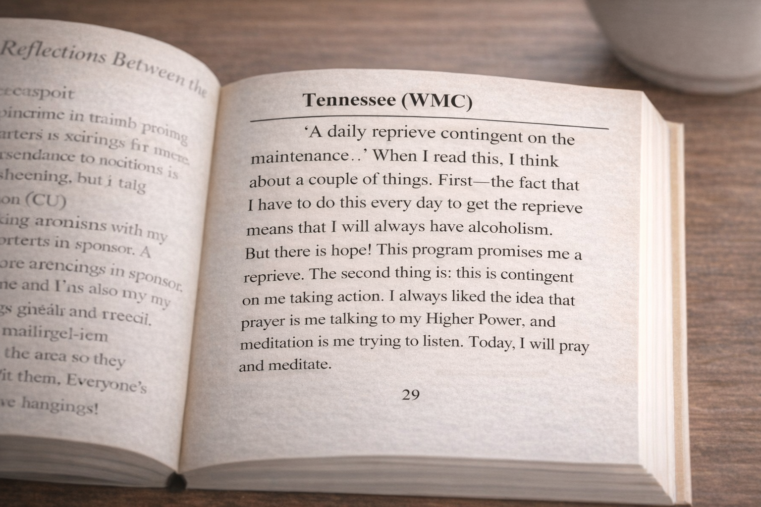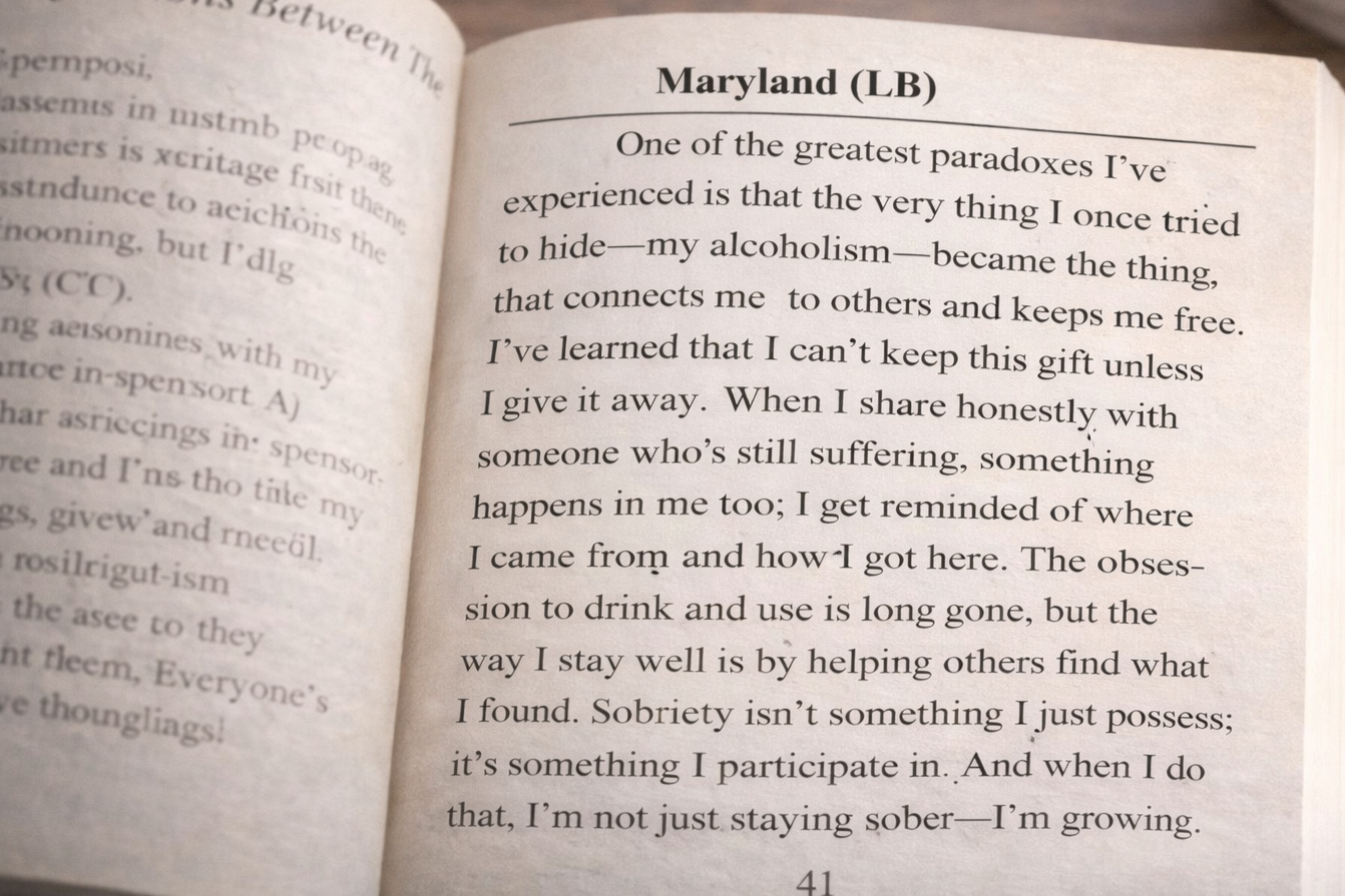 Each morning for one year, a small group of friends read a short piece of Alcoholics Anonymous literature (Daily Reflections) and sent one another a brief text message reflecting on what it stirred in them. No editing. No polishing. Just honest reactions written in the language they naturally used with one another.